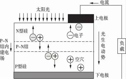在陽光照射下具有特殊電性能的半導(dǎo)體內(nèi)可以產(chǎn)生自由電荷。這些自由電荷定向移動并積累,從而在其兩端閉合時便產(chǎn)生電能。